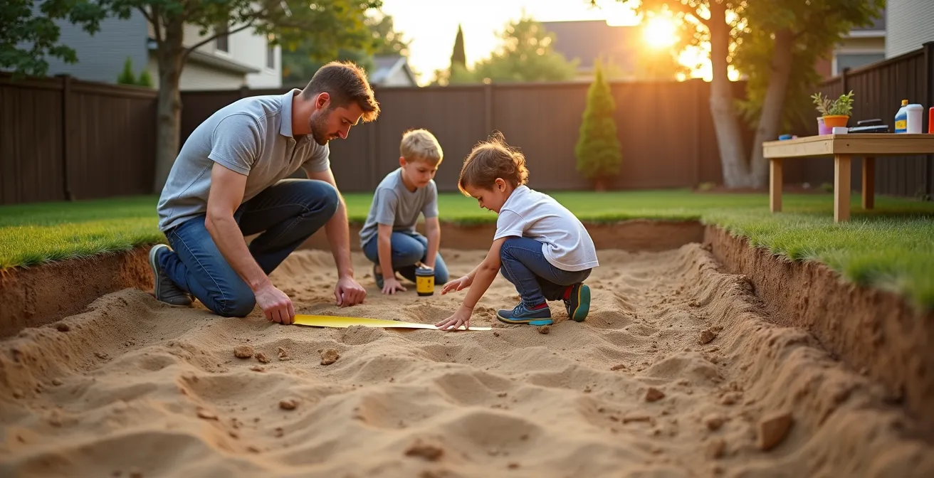La préparation physique du terrain constitue l’étape la plus sous-estimée. Un sol apparemment plat révèle souvent des différences de niveau de 5 à 8 cm sur une surface de 5 mètres. Or une piscine nécessite une planéité inférieure à 2 cm de dénivelé maximal. Cette préparation nécessite un décaissement léger, un compactage manuel ou mécanique, et la pose d’un géotextile de protection.